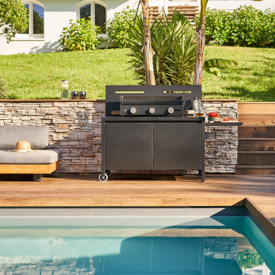 Voordat je je bakplaat op een standaard opbergt, moet je de gasfles loskoppelen en hem buiten opbergen op een droge, goed geventileerde plaats, uit de buurt van warmtebronnen. Bewaar je trolley en bakplaat op een plek waar ze niet beschadigd kunnen raken en beschermd zijn tegen vocht.