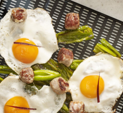 Spiegelei, Anglet-Paprikaschoten und Wurstscheiben