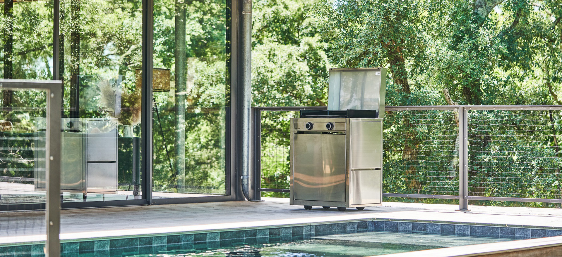 La plancha Modern gaz est un juste équilibre entre performance, innovation, cuisson saine et design. Véritable coup de coeur des amateurs de cuisson, la plancha Modern séduit par son design contemporain, aux lignes épurées, inspiré des planchas traditionnelles. Garantie 15 ans, la plancha Modern gaz est conçue pour durer : équipée d'une plaque en fonte émaillée composée à 80% de matières recyclées, offrant une parfaite répartition et maintien de la chaleur, d'un châssis avec double paroi et de brûleurs au modèle déposé et conçus par Forge Adour, d'un grand bac à graisses pouvant contenir jusqu'à un litre. La plancha Modern gaz est une plancha éco-conçue pensée pour maitriser sa consommation d'énergie et réduire son impact sur l'environnement. Disponible en trois tailles, elle s'intègre à la perfection sur une terrasse en ville en taille 45, ou dans bel espace extérieur en taille 60 et 75 pour se retrouver en famille ou entre amis... En inox ou en acier noir, la plancha Modern gaz s'associe au chariot Modern et capot Modern pour former un ensemble fonctionnel et design. N'hésitez pas à découvrir toute la gamme Modern, des planchas et des supports éco-conçus, pour un extérieur moderne tout en style.